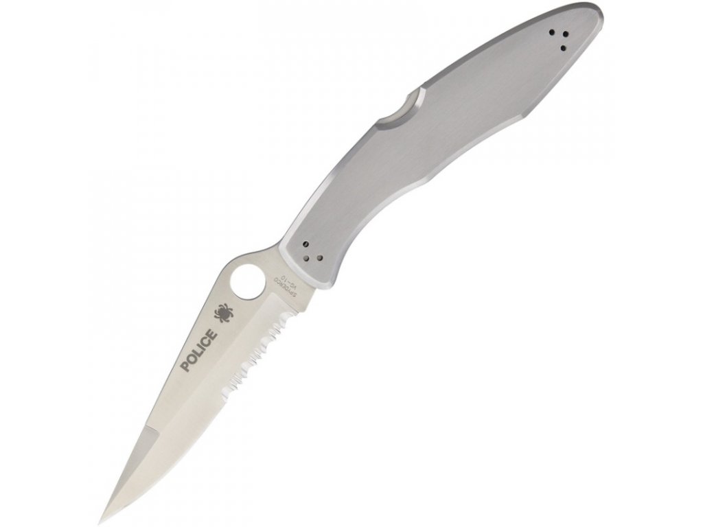 Velká čepel v co nejmenší rukojeti, tímto zadáním se Spyderco řídilo při návrhu policejního nože. Částečně zoubkovaná čepel je vyrobena z oceli VG-10 s vysokým obsahem uhlíku s příměsí kobaltu, tato ocel se snadno brousí a drží ostří. Rukojeť z nerezové oceli se zkosenými hranami pro maximální komfort při používání. Spyderco Police je bezpochyby jedním z ikonických modelů nožů tohoto amerického výrobce. Inovovaný design posouvá o další kvantový skok vpřed kombinací rafinovaných funkcí. Skeletonizované vložky z nerezové oceli vložené do rukojeti nože poskytují působivou strukturální pevnost a pevně kotví robustní mechanismus pojistky Back Lock. Čepel z nerezové oceli VG-10 má otvor 13 mm, který umožňuje rychlé a pohodlné otevírání jak pravákům tak levákům. Standartní čtyřpolohová kapesní spona, která může být snadno konfigurována pro převrácení nahoře nebo dole na obou stranách nože.