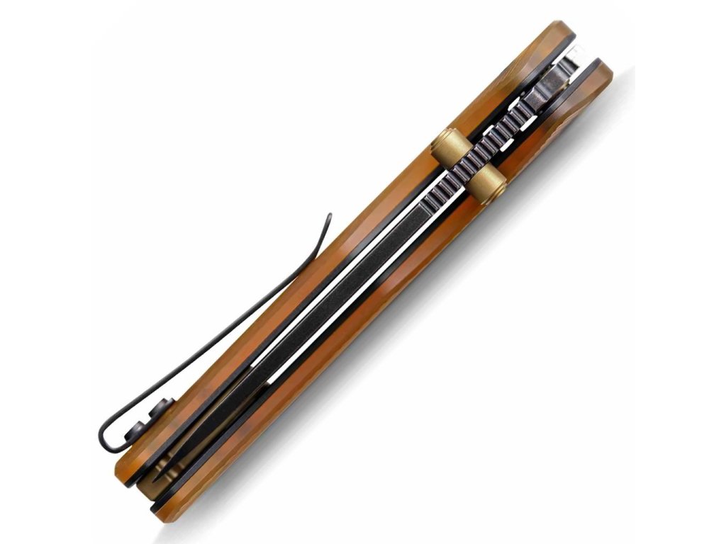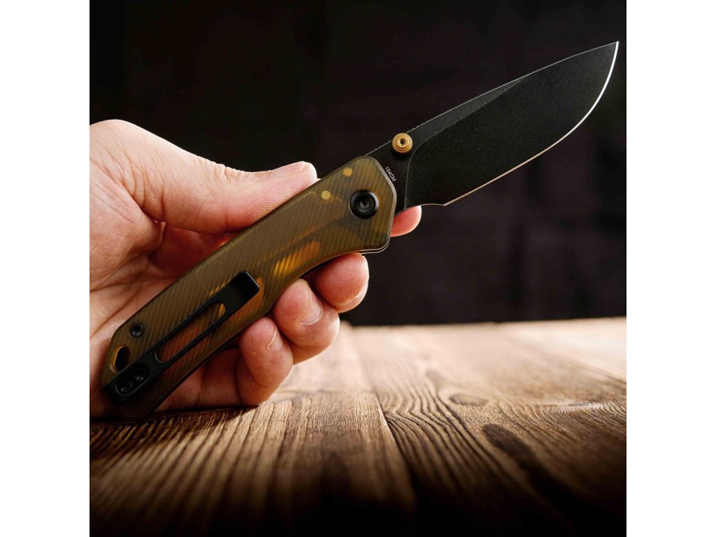 Rukojeť z materiálu Amber PEI zaujme nejen svou pevností a odolností, ale i jedinečným poloprůhledným jantarovým odstínem, který dává noži osobitý charakter. Ergonomické tvarování zaručuje jistý a pohodlný úchop i při delším používání. Hladký chod čepele na keramických kuličkových ložiscích umožňuje snadné jednoruční otevírání. Díky kapesnímu klipu je nůž připraven být diskrétním a stylovým společníkem každý den – ať už v městském prostředí, v dílně nebo při outdoorových aktivitách.