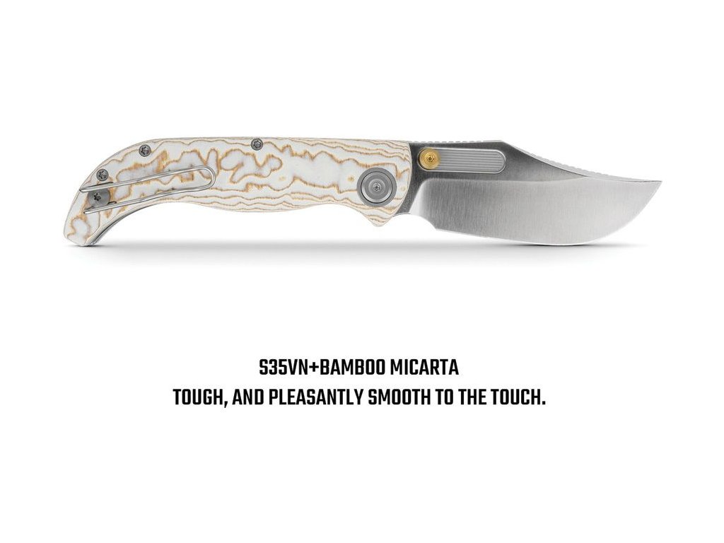 Zavírací nůž Vosteed Naga představuje spojení moderního designu, prémiových materiálů a precizního zpracování. Díky výrazné clip point čepeli a ergonomické rukojeti z Micarty působí nůž robustně, stylově a zároveň velmi funkčně – ideální volba pro každodenní nošení (EDC). Srdcem nože je čepel z práškové oceli CPM S35VN, která je ceněná pro výbornou odolnost proti opotřebení, dlouhou výdrž ostří a vysokou korozní odolnost. Tvar čepele poskytuje skvělé řezné vlastnosti i přesnou kontrolu při detailní práci.