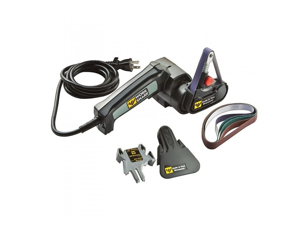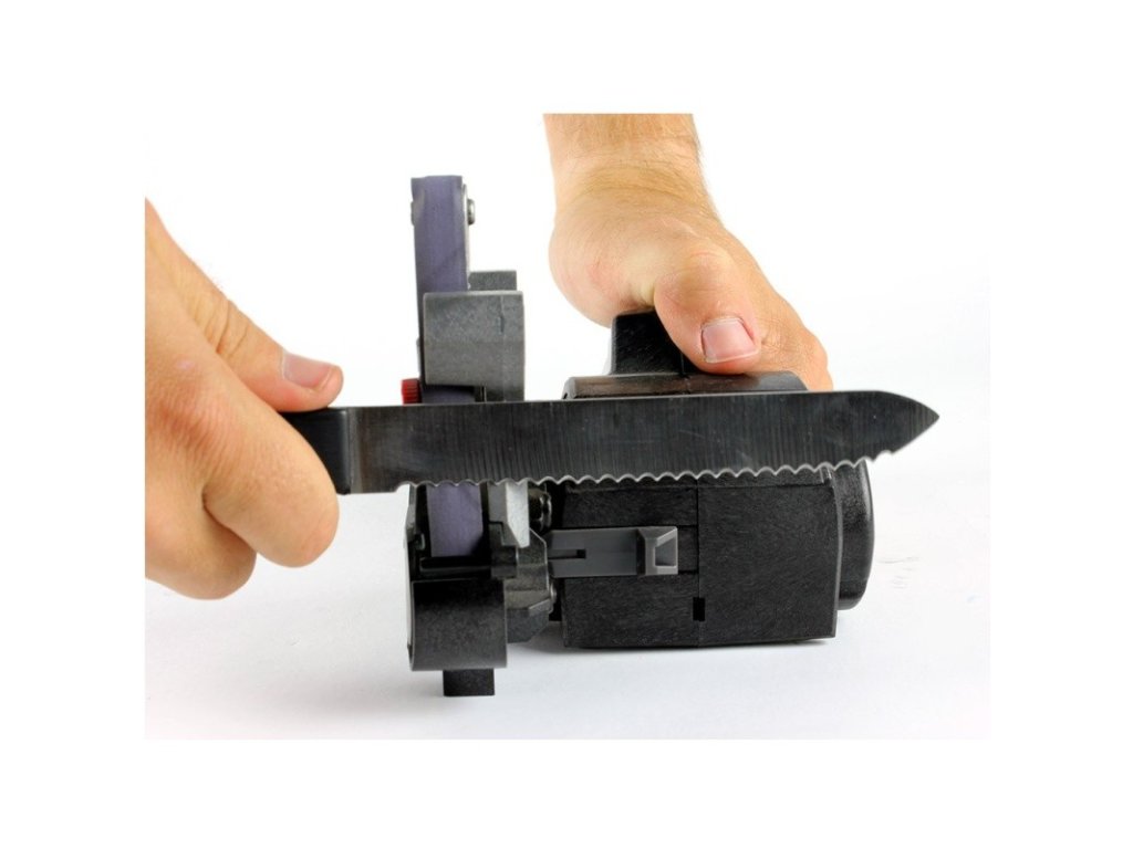 Malá pásová bruska, používá pružné brusné pásy. Bruska je vhodná na nože s klasickým rovným ostřím, i zakřivené nože, tanto čepele, filet nože, zoubkované nože, háčky a prakticky jakýkoliv tvar čepele nože.