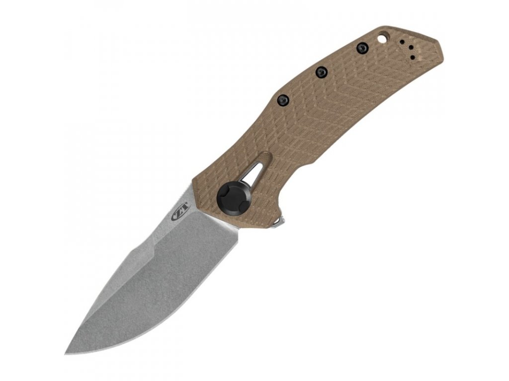 Model ZT0308 nabízí silnou 3,75 palcovou čepel z prvotřídní nerezové oceli CPM-20CV. Rukojeť má na přední straně šupinu z materiálu G10 coyote tan a hřbet z titanu. Přední i zadní strana jsou silně 3D opracované pro mimořádně jistý úchop. Pevný 0,25 palcový čep je vybaven vlastní maticí, která umožňuje jeho nastavení i v terénu pomocí 0,5 palcového klíče.