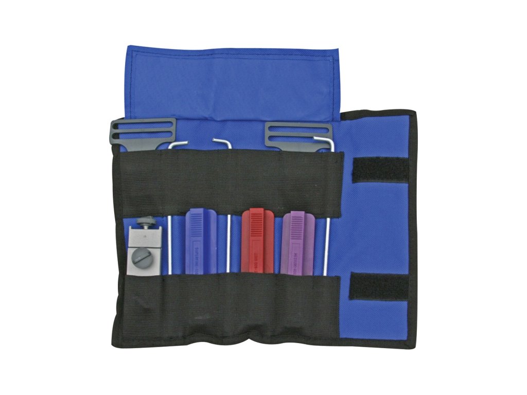 Brousící sadaObsahuje: svorku na uchycení nože, vodící tyče s vodítkem k nastavení optimálního úhlu, modrý brousek 1200 zrnitost, červený brousek jemný 600 zrnitost, fialový brousek střední 400 zrnitost,