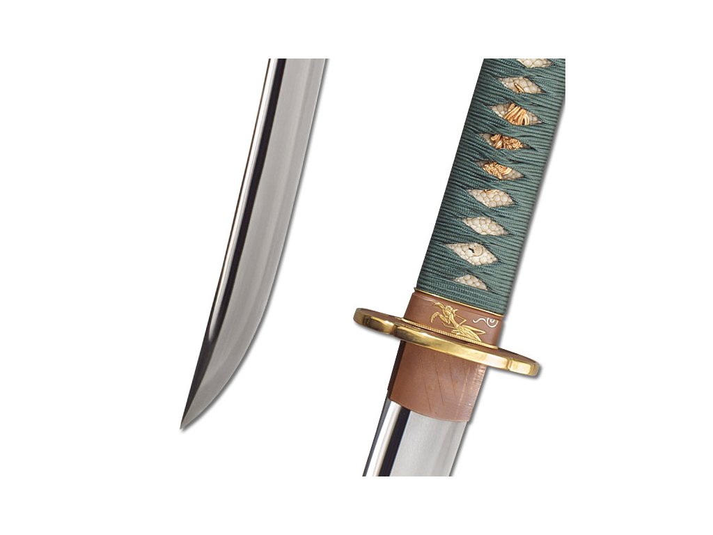 Kudlanka nábožná (Praying Mantis) je v japonské kultuře symbolem lstivosti a moci, a proto je velmi respektovaným motivem samurajských mečů. Tato katana je vyrobena s novou čepelí z nástrojové uhlíkové oceli L6/Bainite ve stylu Shobu Zukuri s Bo-Hi a je vybavena vynikajícími koshirae a je velmi žádaným a funkčním kouskem. Tlumené zelené hedvábné ito a sytě hnědá barva lakované sayy krásně kontrastují s tmavě měděnými a zlatými akcenty tsuby, fuchi a kašira.