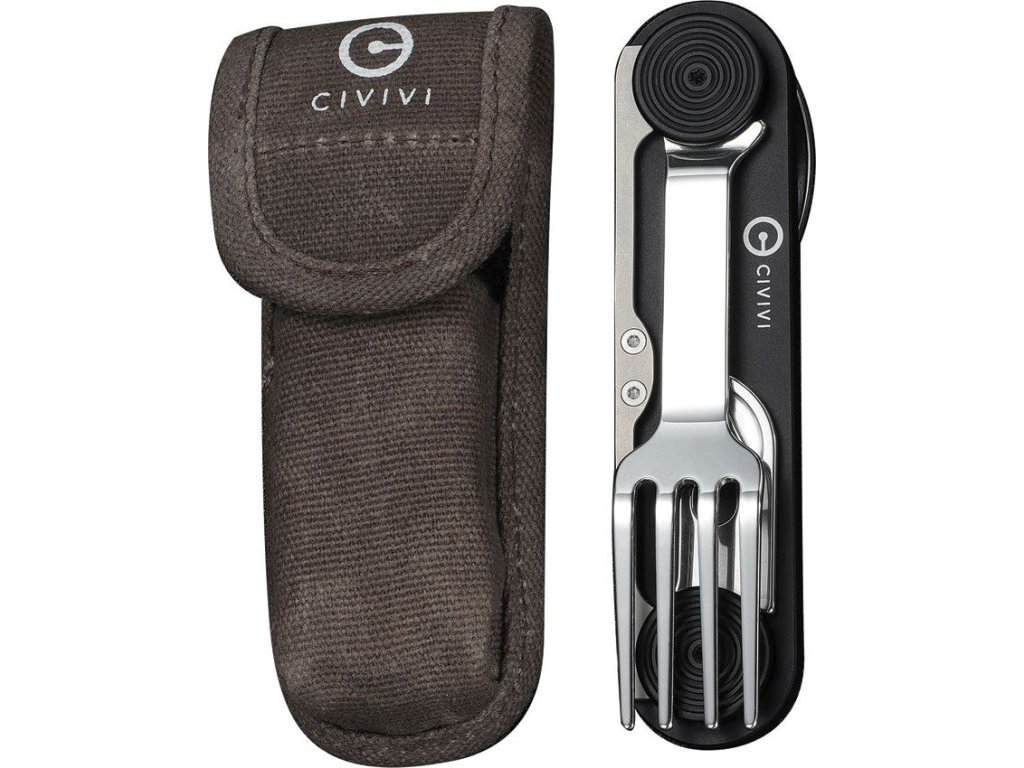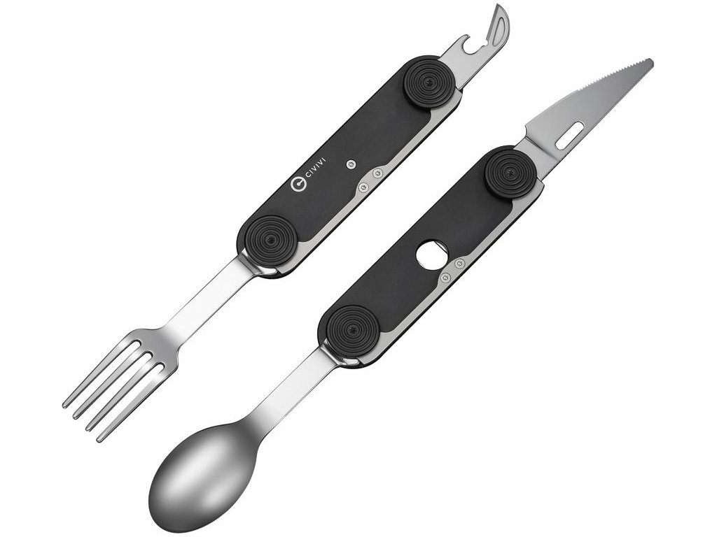 CIVIVI Partake 4-In-1 je inovativní multifunkční nástroj, který elegantně spojuje zavírací nůž, vidličku, lžíci a otvírák v jeden kompaktní celek. Jeho hlavní předností je unikátní konstrukce umožňující rozložení na dvě samostatné části, díky čemuž můžete nůž a vidličku používat současně jako klasický příbor. Všechny nástroje jsou vyrobeny z nerezové oceli a rukojeť z hliníku. Partake je ideálním řešením pro turisty, milovníky bushcraftu i každodenní cestovatele, kteří hledají stylový a praktický způsob, jak se plnohodnotně najíst kdekoli v terénu bez zbytečné zátěže.