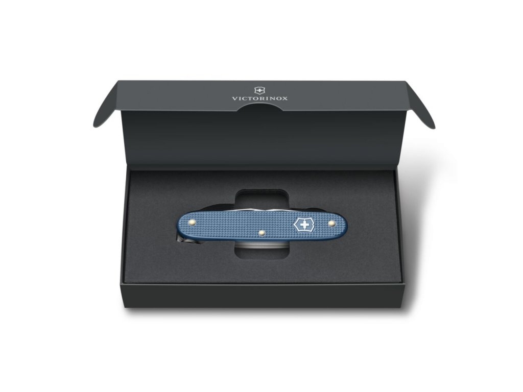 Kapesní nůž Pioneer X Alox Limitovaná Edice 2026 v ledovcově modrém provedení vychází z osvědčené platformy švýcarských nožů značky Victorinox a staví na kombinaci mechanické odolnosti, jednoduché konstrukce a dlouhodobé spolehlivosti. Tělo nástroje využívá masivní eloxované hliníkové střenky Alox, které odolávají oděru, vlhkosti i běžnému mechanickému namáhání. Povrchová úprava nevznikla pouze kvůli vzhledu, ale především pro zvýšení tvrdosti materiálu a zachování barvy i při každodenním nošení v kapse, batohu nebo na klíčích.