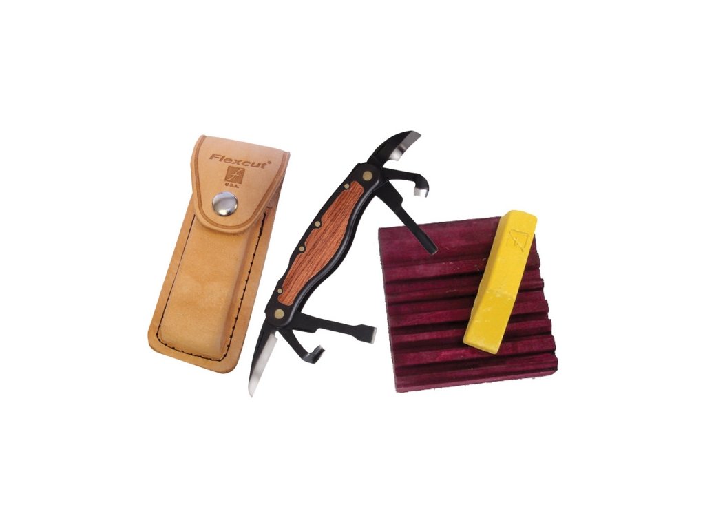 Sada obsahuje také Flexcut Slipstrop, Flexcut Gold lešticí pastu