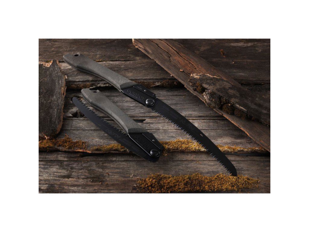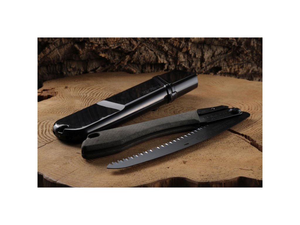 Oslava čtyřiceti let japonské tradice výroby pilek se promítla do limitované edice Gomboy Kuro – nástroje, který spojuje precizní zpracování s moderní technologií povrchové úpravy. Zakřivený list z kvalitní japonské oceli pokrývá tenká vrstva černého oxidu, která zvyšuje odolnost vůči opotřebení i korozi a zároveň dodává pile elegantní, temný vzhled. Každý tah listu působí hladce a účinně, ať už při práci v lese, na zahradě nebo během dobrodružství v přírodě.