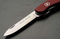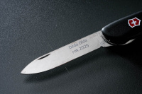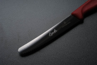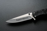 Vygravírujeme nůž textem, jednoduchou grafikou, emblémem, logem nebo smajlíkem.