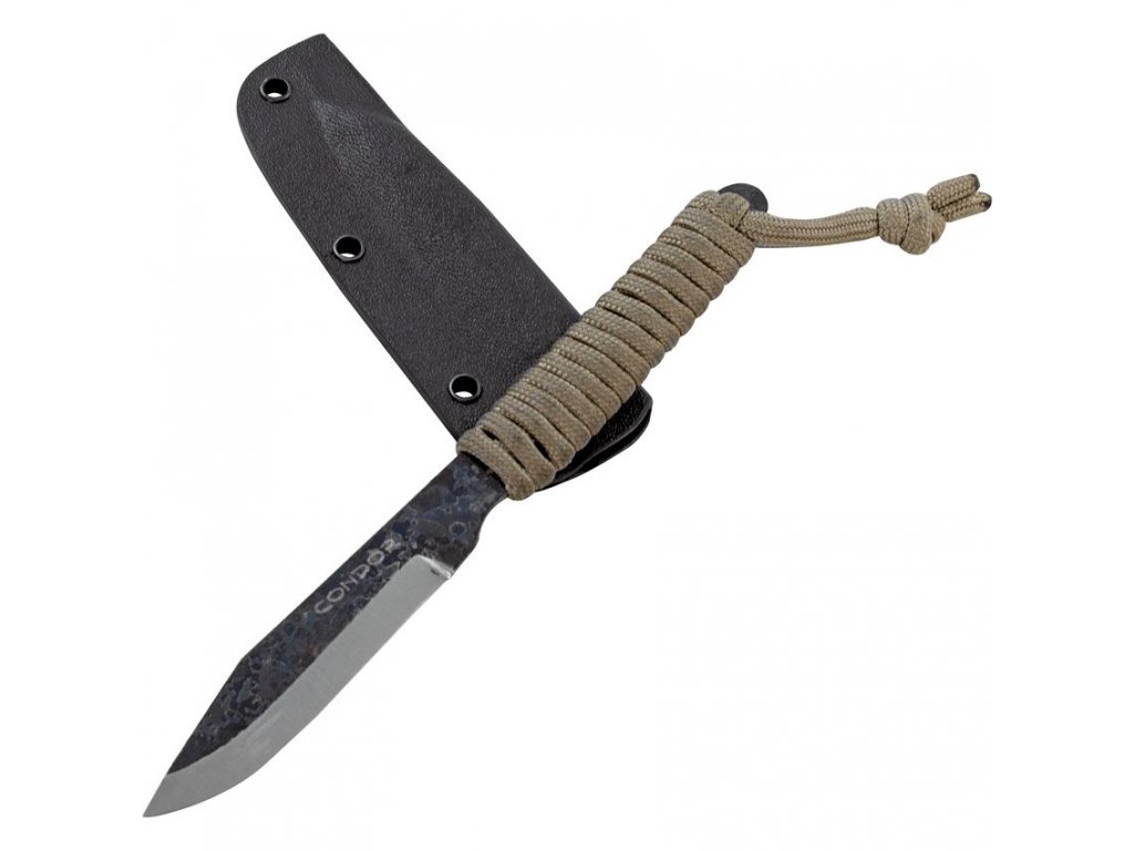 Condor Bushnecker, lehký nůž s pevnou čepelí, který lze pomocí přiloženého kydexového pouzdra a kuličkového řetízku skrýt a nosit jako nůž na krk.