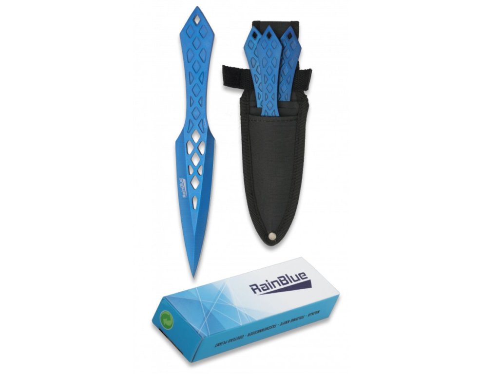 Albainox Rainblue Throwing Knife Set je stylová sada vrhacích nožů, která zaujme na první pohled a přesvědčí při každém hodu. Moderní rainblue povrch dodává nožům jedinečný, lehce futuristický vzhled, díky kterému se odliší od běžných vrhacích sad.