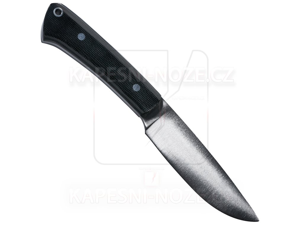 Bark River Highland Special v provedení s černou rukojetí z Black Canvas Micarty působí nenápadně, ale technicky promyšleně. Tvar čepele vychází z tradičního skotského stylu, upraveného pro moderní použití v přírodě i každodenním nošení. Linie řezu navazuje plynule, špička má dobrou kontrolu a dovoluje přesnou práci se dřevem, potravinami i jemnějšími úkony, kde rozhoduje cit v ruce spíš než hrubá síla.