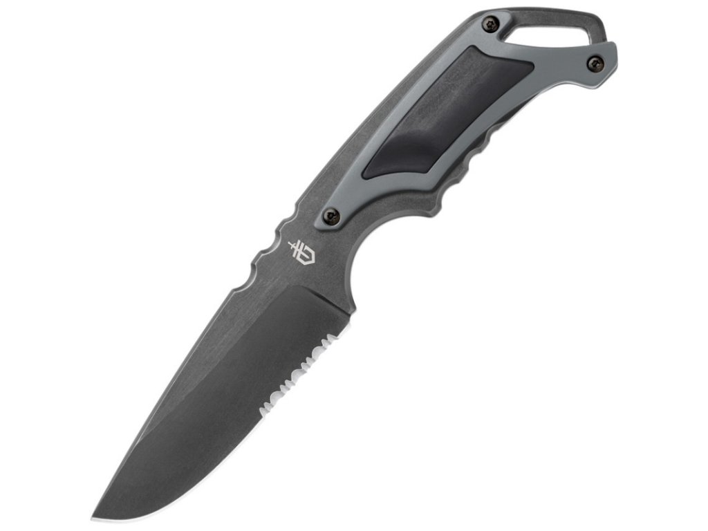 Messer mit feststehender Klinge der Marke Gerber, hergestellt aus einem Stück hochwertigem rostfreiem 7Cr17MoV-Stahl mit Titanium Finish.