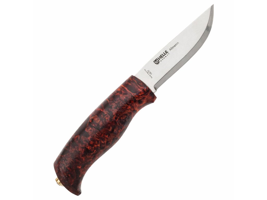 Helle Allmenn, v překladu z norštiny „pro všechny“, představuje univerzální nůž navržený pro široké spektrum použití v přírodě i při každodenních činnostech. Konstrukce s plným tangem přináší vysokou mechanickou odolnost a stabilitu při zatížení, což ocení uživatelé při práci se dřevem, přípravě potravy nebo detailním vyřezávání. Plnohodnotná ocelová kostra probíhá celou rukojetí a zvyšuje pevnost při páčení i dlouhodobém namáhání.