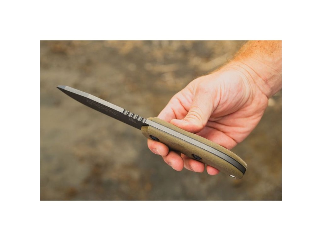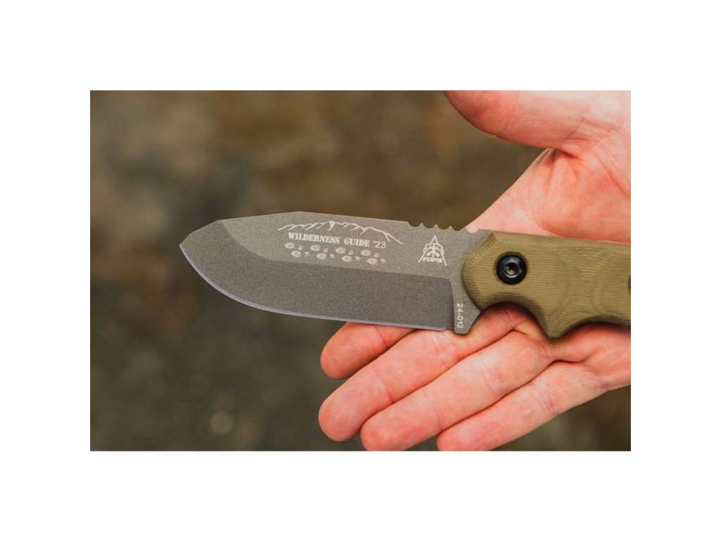 TOPS Wilderness Guide '23 je kompaktní a odolný outdoorový nůž navržený pro každodenní použití v přírodě. Čepel z uhlíkové oceli 1095 s odolnou povrchovou úpravou nabízí skvělou výdrž ostří, snadnou údržbu a vysokou spolehlivost i v náročných podmínkách. Univerzální tvar čepele zvládne přípravu dřeva, práci u ohně i zpracování potravin nebo zvěřiny. Ergonomická rukojeť z Micarty poskytuje jistý a pohodlný úchop i za mokra, zatímco fulltang konstrukce zaručuje maximální pevnost. Díky Kydex pouzdru je nůž vždy připraven k rychlému použití. Ideální volba pro bushcraft, kempování i survival.