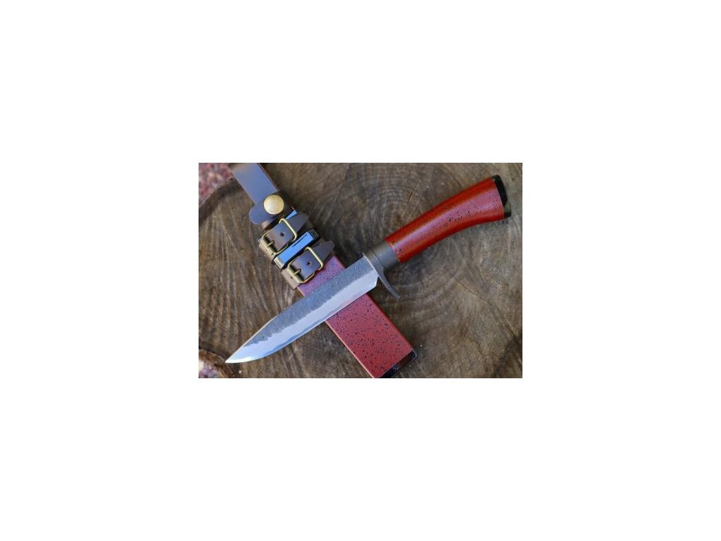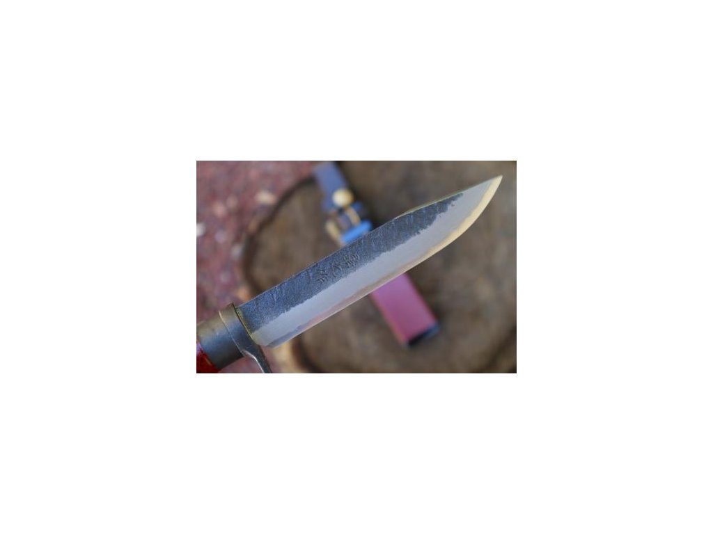 Profil čepele působí vyváženě, s dostatečnou rezervou materiálu pro pevnou práci i kontrolovaný řez. Ocel Blue 2 reaguje velmi dobře na broušení, takže nůž ocení uživatelé, kteří chtějí dosáhnout extrémně jemného ostří a zároveň počítají s pravidelnou údržbou uhlíkové oceli. Přirozená patina, která se časem vytváří, dodává každému kusu osobitý charakter a jasně odlišuje tento nůž od běžné sériové produkce.