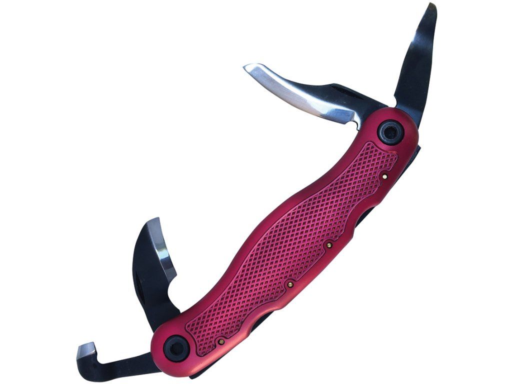 4.25" (10.8cm) closed. High carbon stainless blade. Burgundy aluminum handle. Two back locks. Pelican blade, Variable radius hook knife, Hook knife, Gouge scorp. Clam packed.Doplňkové parametry